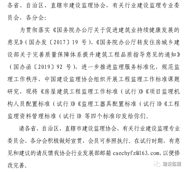 | 《房屋建筑工程监理工作标准(试行)》等四项新标准出台 |