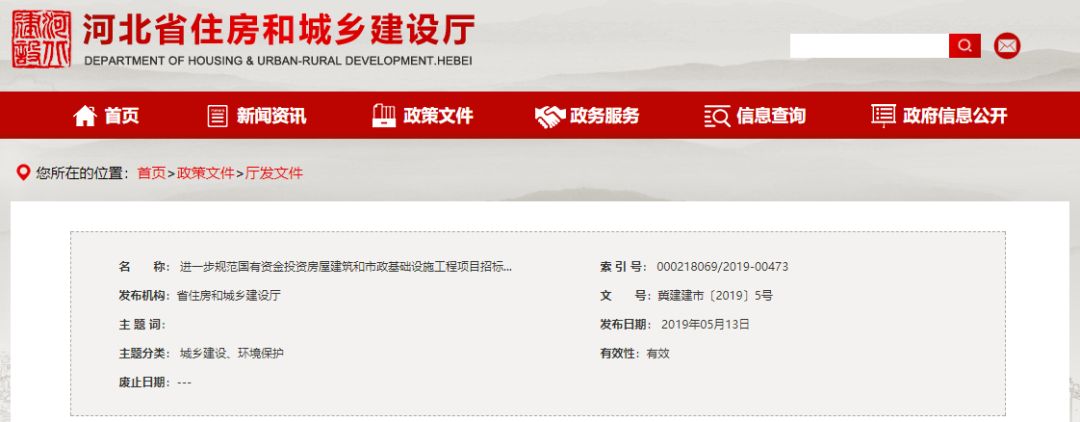 2019年5月河北省住建厅发布《进一步规范国有资金投资房屋建筑和市政基础设施工程项目招标投标工作的若干意见》,明确: