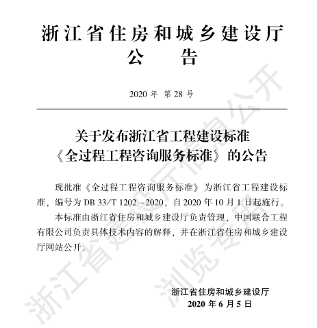 关于发布浙江省工程建设标准《全过程工程咨询服务标准》的公告