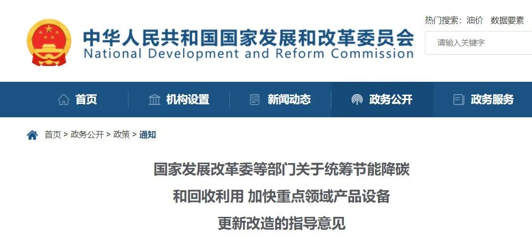 五、加强组织实施(一)加强统筹协调。国家发展改革委会同工业和信息化部、财政部、住房城乡建设部、商务部、人民银行、国务院国资委、市场监管总局、国家能源局等部门加强协调配合,形成工作合力,做好工作调度、跟踪评估、督促检查和经验总结,将各项目标任务落实落细。工业和信息化部会同国家发展改革委等部门加大电机、电力变压器能效提升计划实施力度,做好电机、电力变压器更新改造。国务院国资委组织中央企业发挥示范引领作用,加强节能降碳先进技术攻关,强化高效节能产品设备生产制造,带头做好更新改造和回收利用。