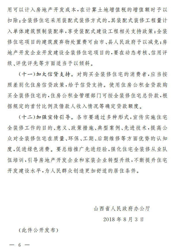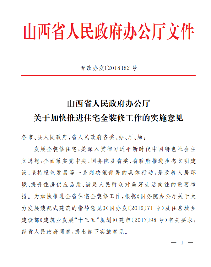 山西省人民政府办公厅关于加快推进住宅全装修工作的实施意见
