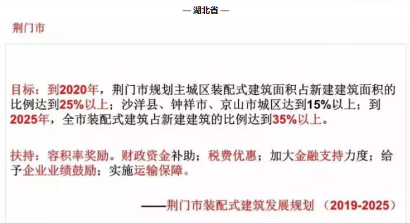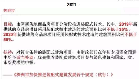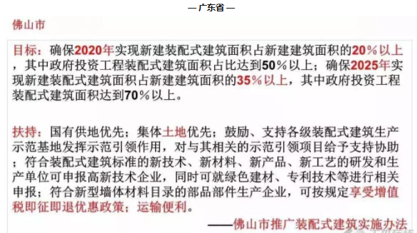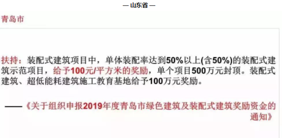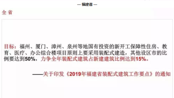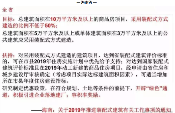 2019上半年全国各地装配式建筑目标和扶持政策汇总