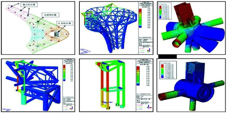 利用专业软件MST、XSTEEL、ANSYS、SAP、MIDAS、3D MAX建立空间模型、进行节点建模及有限元计算、结构整体变形计算和施工过程模拟。