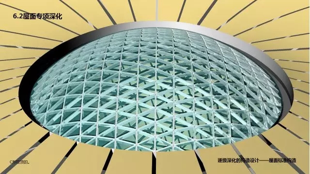 机场屋顶中心由一个六边形天窗、六条条形天窗、八个气泡窗相互连接,组成顶部主要自然采光体系,可以让室内自然光采光面积超过60%。
