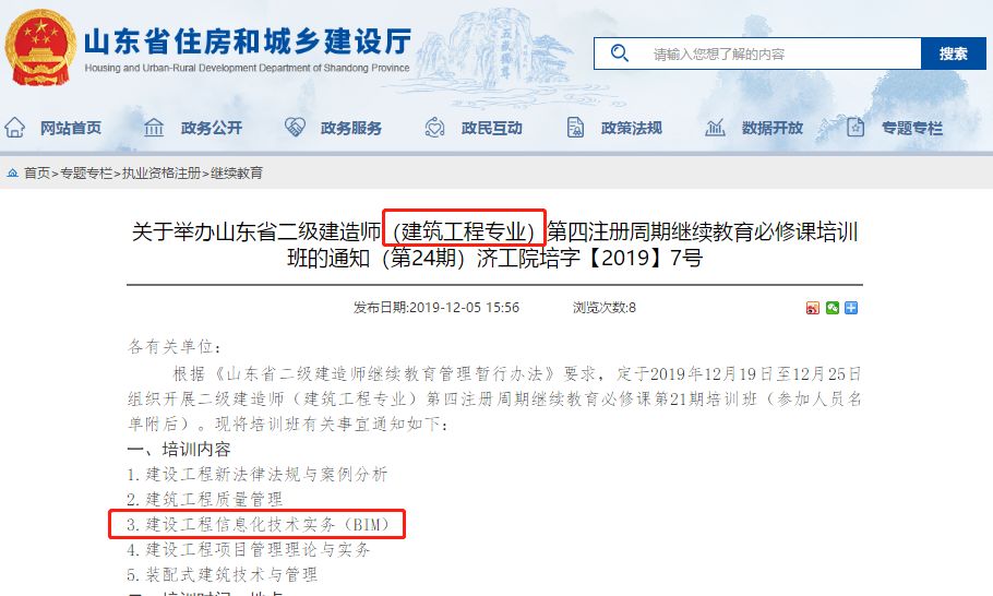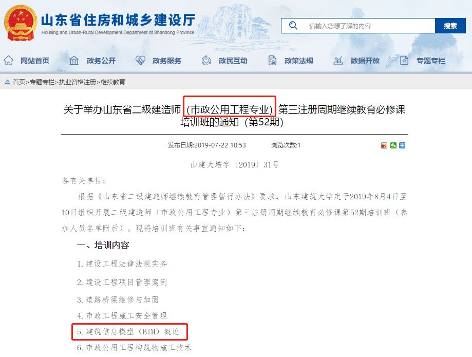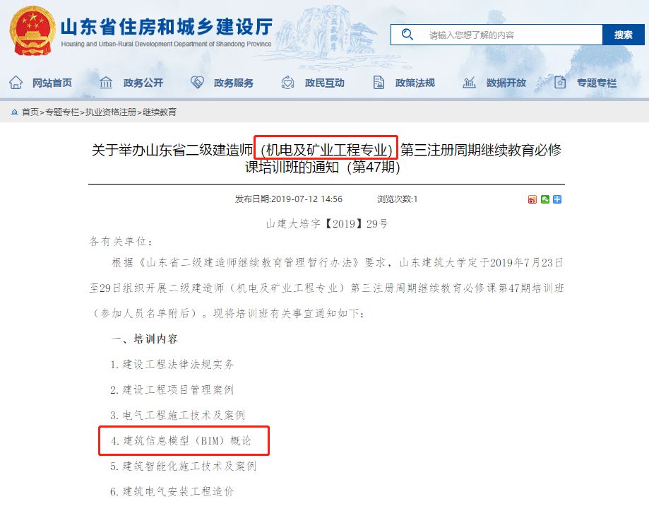 山东省积极响应住建部精神,结合行业新形势,早已将BIM技术纳入二级建造师继续教育必修课培训内容。