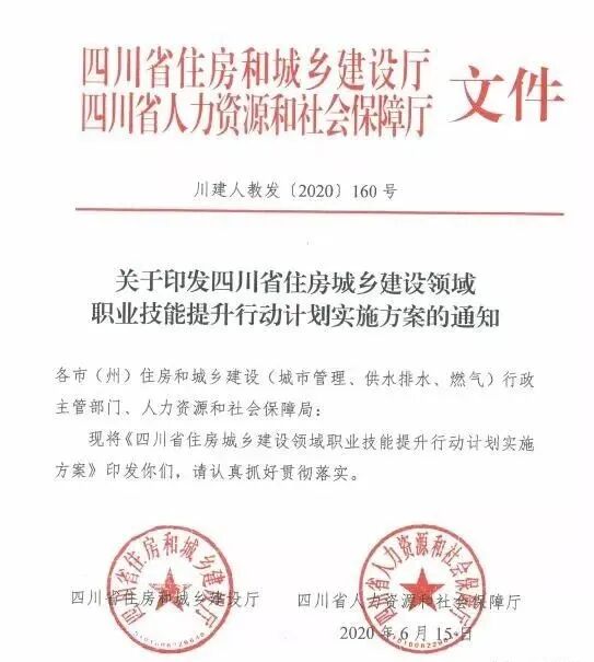 | 为加快推进技能人才队伍素质整体提升,为四川建筑业高质量发展提供技术支撑,6月15日,四川省住建厅和省人社厅联合印发了 《四川省住房城乡建设领域职业技能提升行动计划实施方案》,提出到2021年底,重点在建筑施工、市政公用等行业实施技能提升行动计划,共计划培训包括BIM技术人员在内的的技能人员34万人次,并落实职业培训补贴。