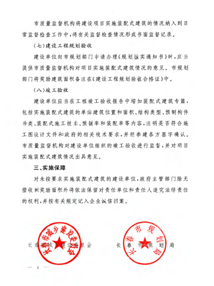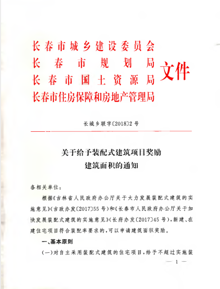 长春市关于给与装配式建筑项目奖励建筑面积的通知