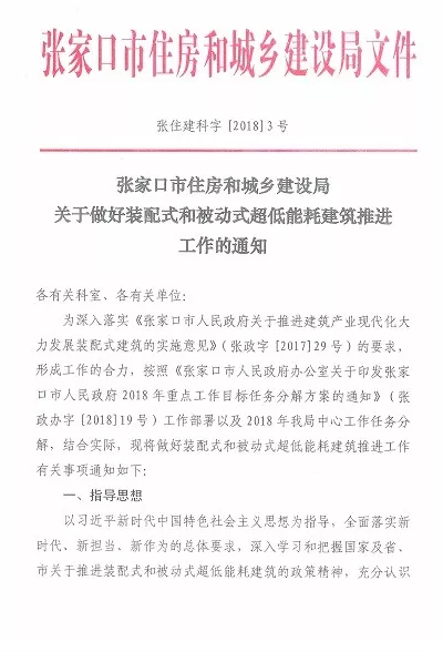 张家口市关于做好装配式和被动式超低能耗建筑推进工作的通知