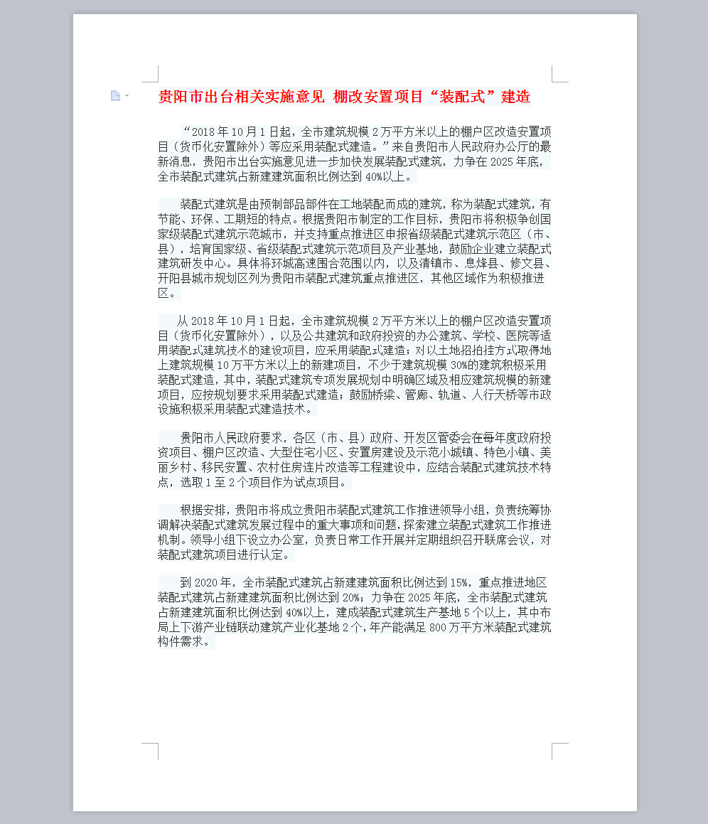 贵阳市出台相关实施意见 棚改安置项目“装配式”建造