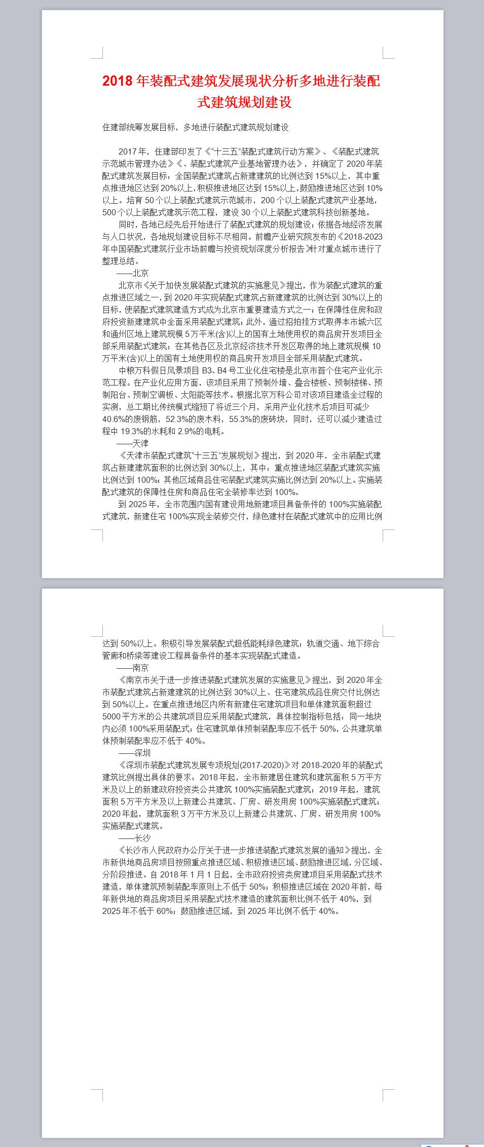 2018年装配式建筑发展现状分析多地进行装配式建筑规划建设
