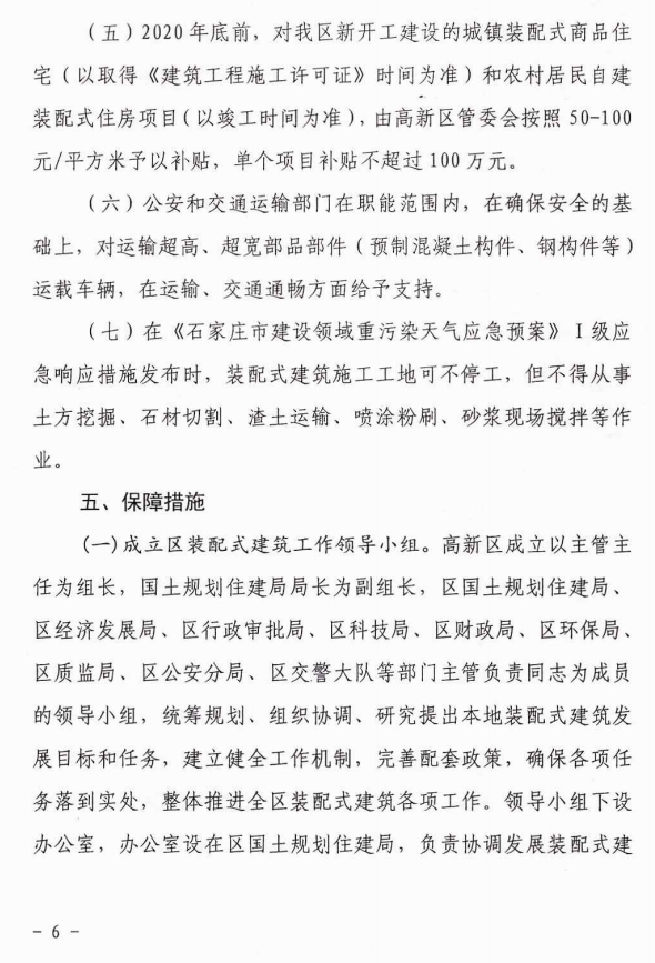 石家庄高新区关于大力发展装配式建筑的实施意见
